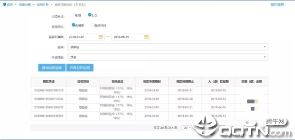 挑选必须复印的隶属期及相对的申请理由,点击查询补税信息内容