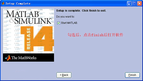 10、启用“start matlab”后,点一下“finish”即安裝进行。