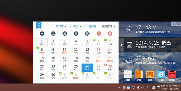 ▲软媒时间,瞬息万变-不占有一切附加室内空间,电子万年历气温闹铃文本文档在任务栏图标時间区极致展现;
