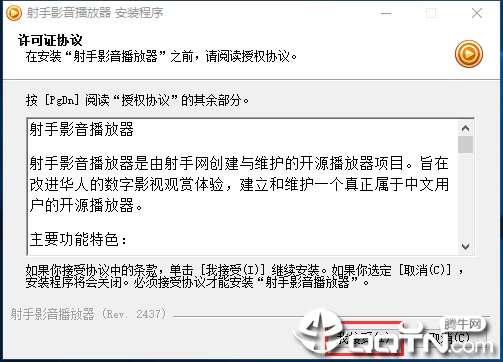 1、最先在本网站免费下载射手播放器app下载,打开下载的.exe文件,挑选【我接纳】