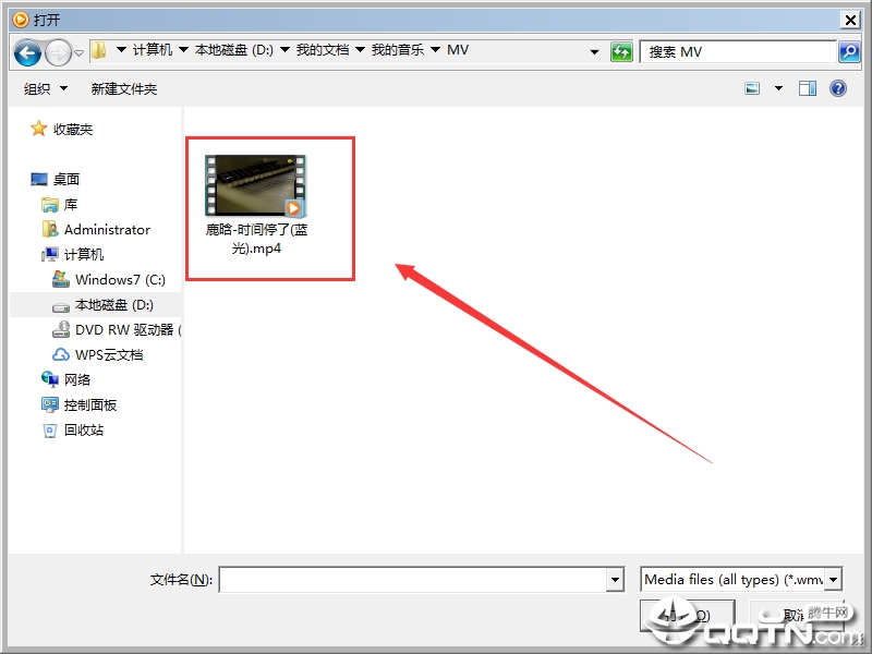 2、接下去挑选你需要播放视频的当地视频文件格式,我接下去将以王源-时间停了mv开展演试。请朋友们寻找自身的手机本地视频地理位置并开启哦。