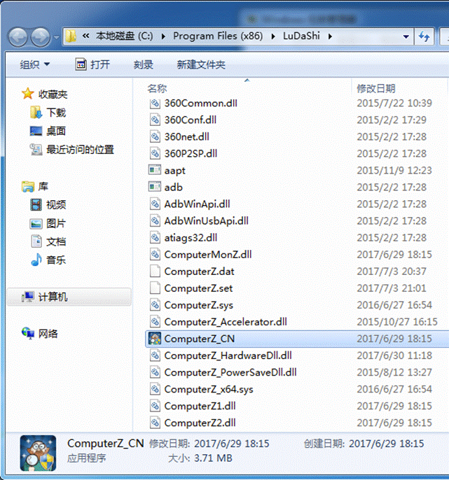 5、这时便会开启你已经运作的鲁大师程序流程,所在的部位,并全自动选定了 ComputerZ_CN.exe(一部分系统软件很有可能会沒有末尾的.exe字眼) 文档: