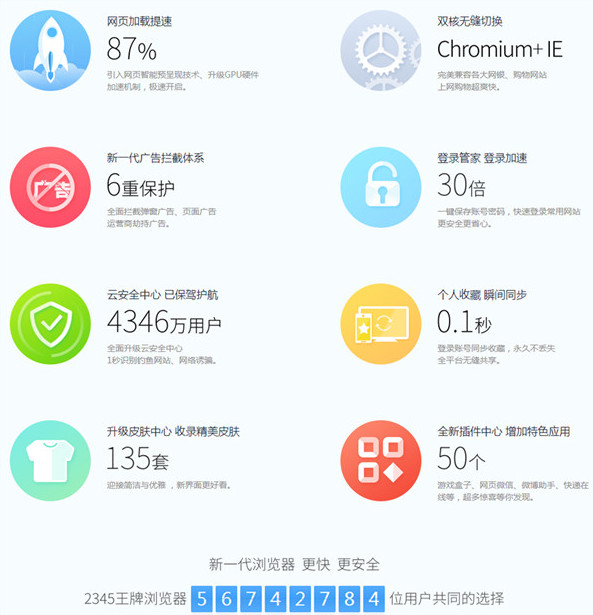 全新升级的网页页面3D渲染模块、智能化2核驱动器,无论什么网站都能解决轻松,让您享有更快的网上访问 感受!