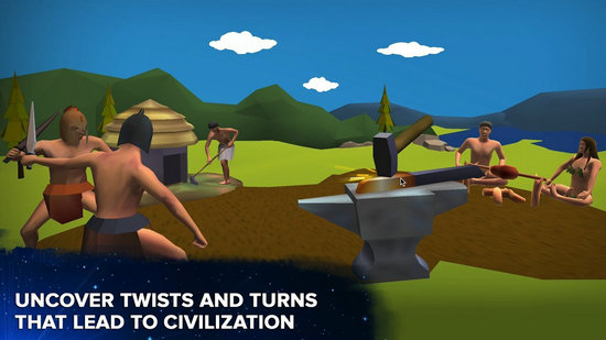 2、点击大脑产生思想,进化文明,带你穿越人类文明时代