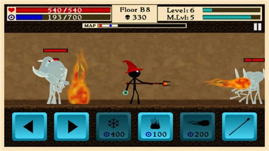 2、女巫可以释放火、霜、闪电三种法力,每个火柴棍战士都有劣势。