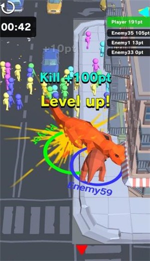 2、而且你需要控制恐龙吃掉那些四散而逃的人类,每吃一次都能变大